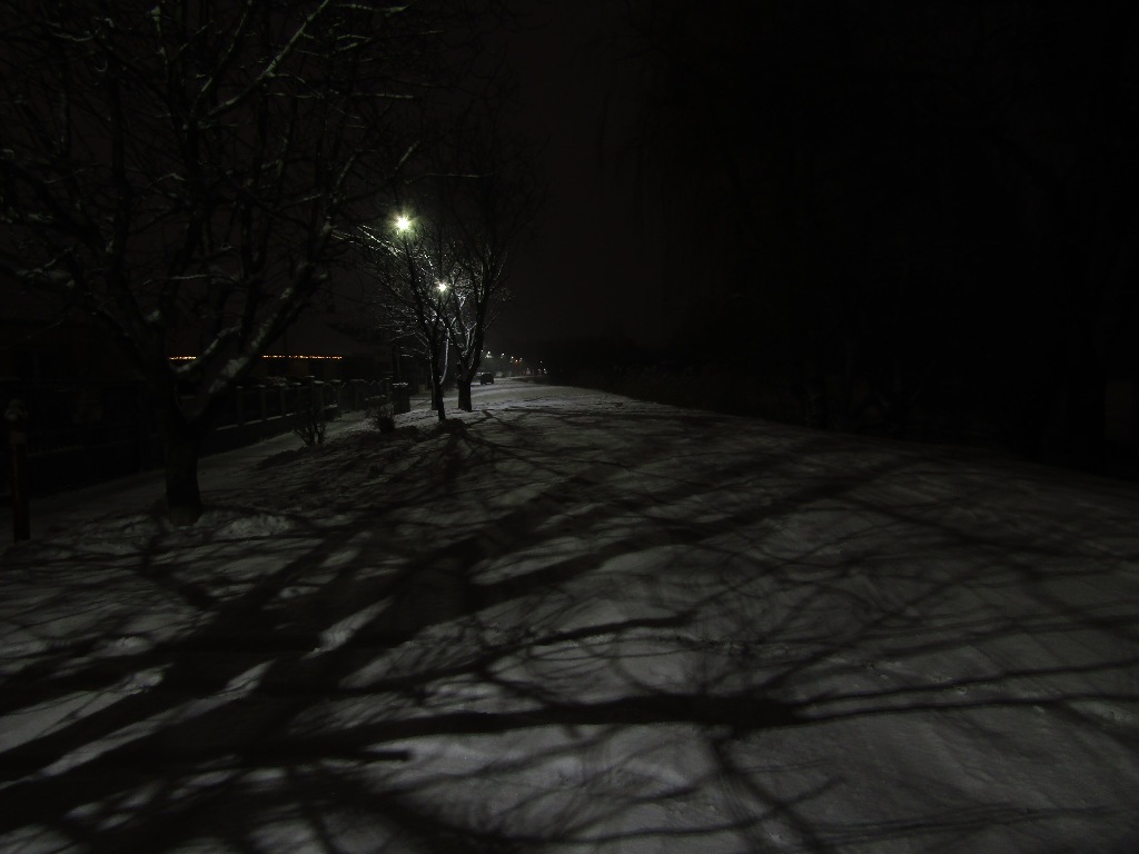 Egyszer csak egy kivilágított útra érkezett a test. No, mehettünk volna lassabban is. Ha viszont már itt vagyunk, nézzük ezt az ünnepi ruhát, melyet a város magára öltött. A fekete és fehér, a fény és sötétség valódi örök csatája folyt a szemek előtt. Hmm! Micsoda varázslat! Egy idősebb néni egy hólapáttal kezében kondizott, majd a távolabbi kis lejtős részen anyuka vitte kis óvodás gyermekeit csúszkálni egyet. Idillikus állapot! Mi kell ennél több?