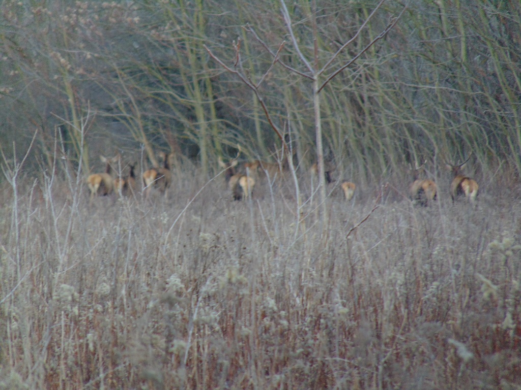 Lódult a láb, lendült a kéz, így tél derekán jó is az, ha bekapcsolt a központi fűtés. Nyomja a természetbarát, amíg csak lehet. Egyszer csak a múltkori túra főszereplői léptek fel ismét a természet nagyszínpadára. Csak most többen lettek. A patás marmagassága az egy métert verte, s bizony több szőr volt rajta mint a pomponon. Súlya alapján sem versenyezhettünk volna vele, és ami a feje tetején volt, azzal aztán végkép nem. A gímszarvas büszkén és méltóságteljesen ugrott át a földúton, majd társaihoz csatlakozott a szántó melletti erdő szélén. Egy, kettő, három, négy… kilenc. Itt állt meg a szám. Békésen megálltak és bámultak vissza. Mi van, nem láttál még bikát? Meg tehenet? Hmmm… Barátrécét is láttunk már többször, de mégis. Akárhányszor találkozik az ember e csodálatos lényekkel, mindig olyan jó legeltetni rajtuk a szemünket. S elgondolni, hogy lehet ekkora valaki, aki csak bokrok, fák hajtásait, füvet és magokat eszik. Ők az ártéri erdők királyai! Nem győzheti le őket más állat, csak a farkas, meg esetleg a borjaikat a kóbor kutyák. Ha azonban azt mondjuk szarvas, akkor azonnal összekapcsoljuk az ősz eleji, közepi bőgéssel, melyben itt a környéken sincs hiány. Aki érezni szeretné a természet puszta vad erejét, azon túl, hogy a mindent uraló vizet figyeli, szezonban kapja el fülével a szarvasbőgést. Igazi gyomorig ható élmény, mikor meghalljuk.