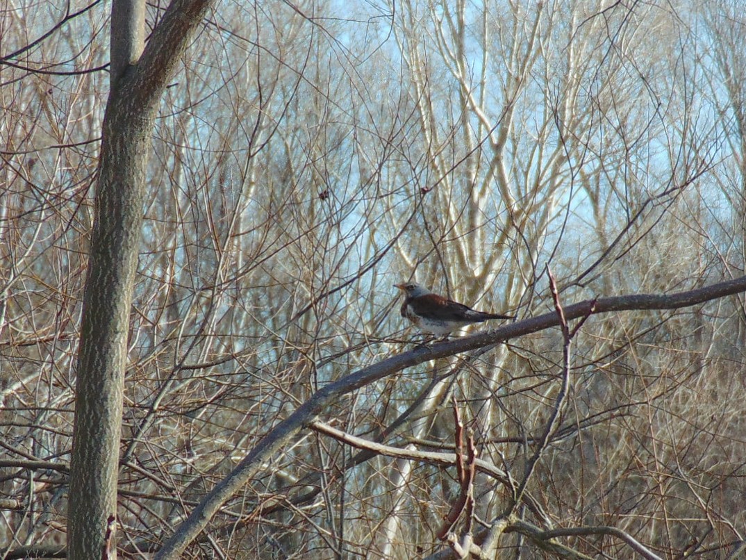 Vannak azonban más felé is szép tájak, így felkerekedtem, és uzsgyi, vissza a bekötő útig. Az óra azonban még nagylelkűen bánt velem, így engedett még egy kis kimenőt a másik oldalra is. Köszi! Lefelé már jobban szabdalt, változatosabb a környék. Bokrok fák itt – ott, amott. Rajta pedig kedvenceink pihennek. Például a már jól ismert szintén téli vendég, a fenyőrigó.