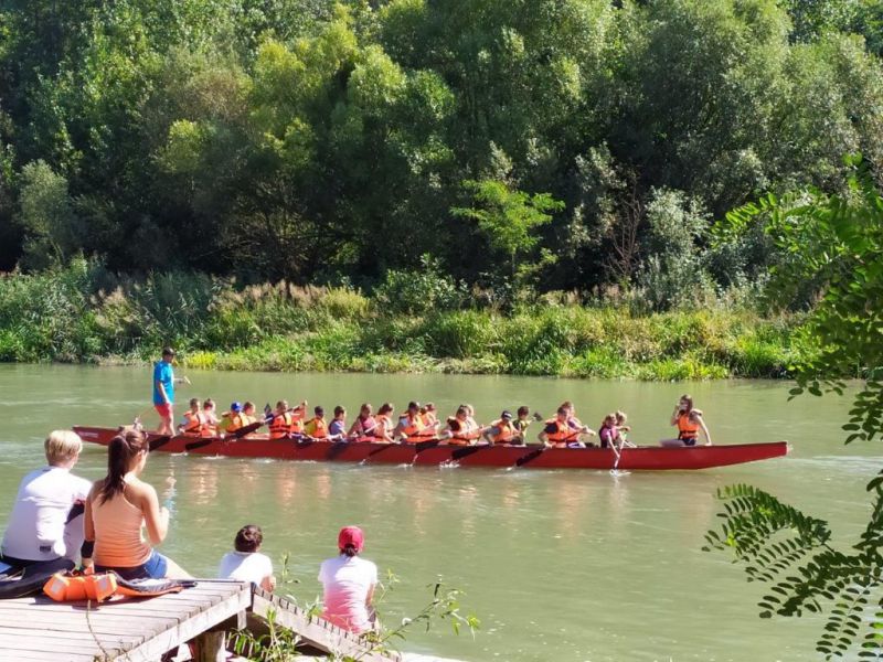 Délutáni program keretein belül a csoport a Kimlei Sárkányhajó Egyesület vendégszeretetét élvezte. A tanulmányútra olyan diákok érkeztek, akik még ez ideáig nem ültek sárkányhajóban. Ennek ellenére bátran jelentkezett mindenki a kalandra. Az utasítások betartása mellett megismerkedtek a helyes evezési technikával.