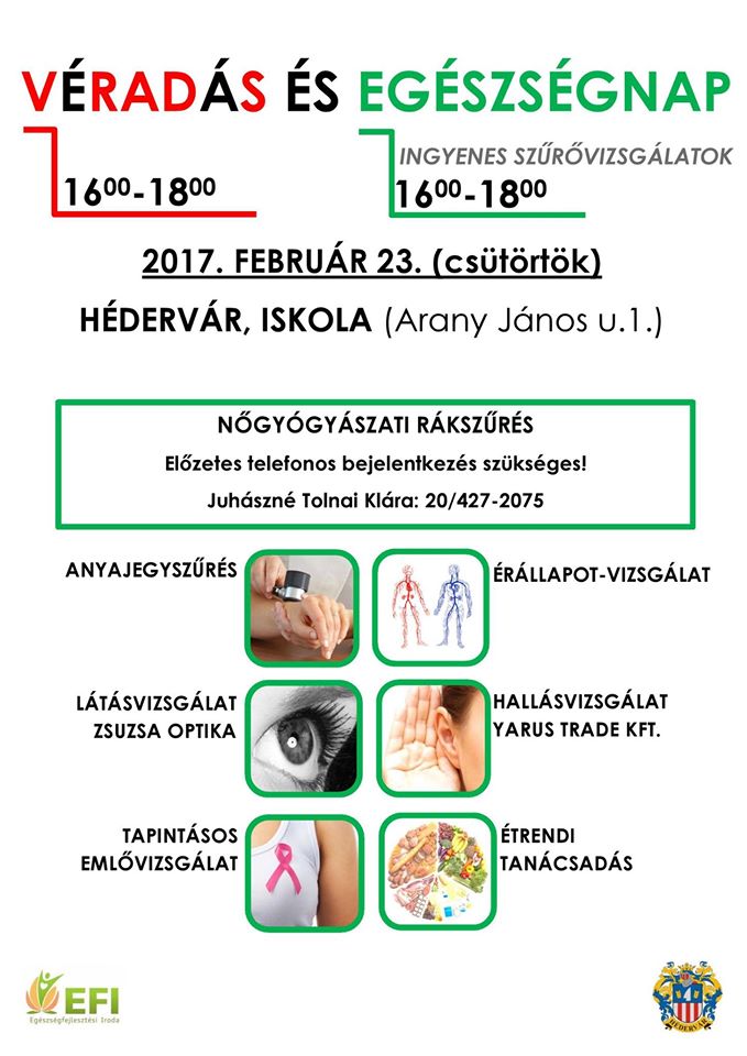 Nőgyógyászati rákszűrés előzetes bejelentkezés alapján. Bejelentkezés: Juhászné Tolnai Klára 06 20 427 2075