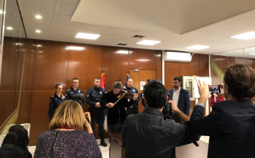 Az ünnepi gyertyagyújtás szimbólumaként felkapcsolták az Ország Karácsonyfáját díszítő fényfüzért a Kossuth téren vasárnap.