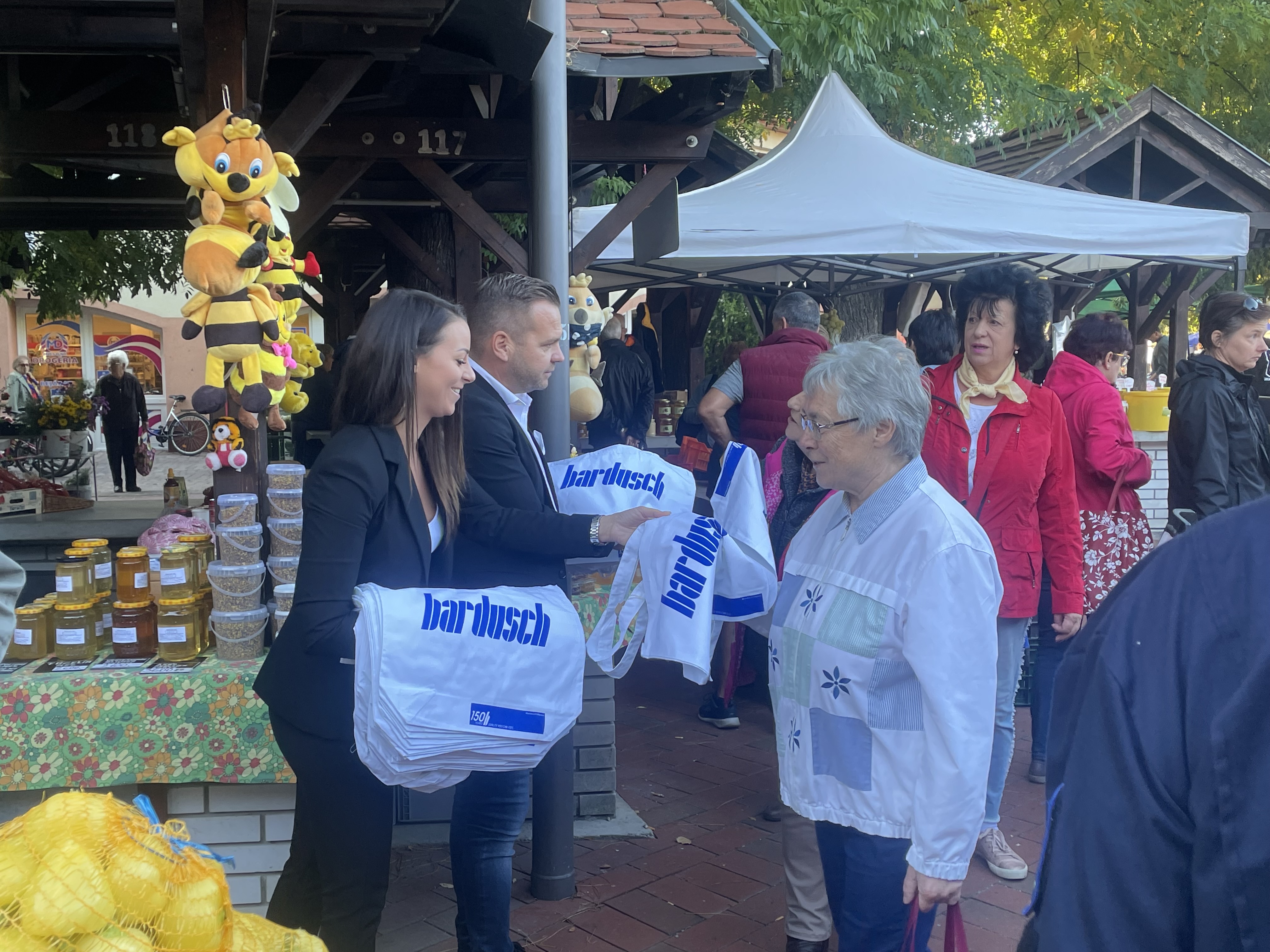 A mosoni piacon összesen 150 környezetbarát textiltáskát osztottak ki szombat délelőtt, a Bardusch Bértextília Kft. 150. évfordulója alkalmából. A németországi anyavállalat idén 150 éves, így Franciaországban, Spanolyországban, Svájcban, Lengyelországban és Magyarországon környezetvédelmi és szociális akciókat indít a vállalat.