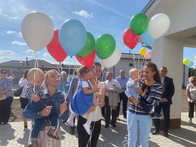 Kiss Béla polgármester köszöntője, majd az épület megáldása után, a leendő bölcsisek anyukáik segítségével lufikat engedtek a magasba.