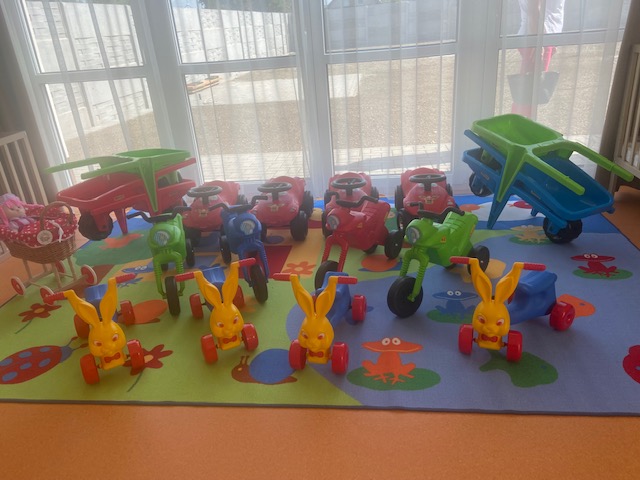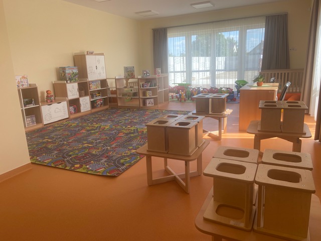 Ezután mindenki bejárhatta a bölcsőde belső tereit is. Aprócska székek az aprócska asztalokon, hatalmas szőnyeg középen és rengeteg új játék a polcokon. A több mint 200 négyzetméteres épületben egy tágas, udvarra néző csoportszoba várja a kicsiket.