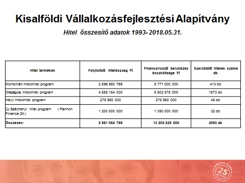 Mindebből jól látható, hogy az országos mikrohitel programban 4,8 Mrd forintot folyósítottak. Mindezt úgy, hogy 1993-ban 300.000 Ft volt a felső határ a mikrohitel igénybevételénél.