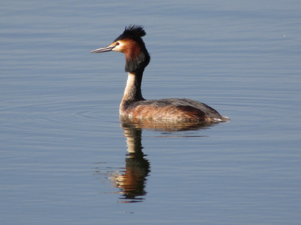 Amíg azonban a fekete tollgombóc melózik érte, hogy mindenki odafigyeljen rá, addig egy másik, nála jóval áramvonalasabb csöndesebb szárnyas épp az emberi tekintet tüzéből igyekezett kislisszanni. A búbos vöcsök nem egy exhibicionista állat. Köszöni szépen, ő nem akar a címlapokon szerepelni. Ha lehet, inkább odébb úszik. Nem kiabál, nem hisztizik, szépen békében ringatózik a vízen, s ha kedve tartja, búvárkodik egyet több mint fél percig is, egy szuszra. Ettől persze elázik a sérója, de olyan anyagból készült, melynek nem árt ilyesmi. Kidugja fejét s az a pompás tollköltemény, melyről nevét is kapta, pontosan ugyanúgy állt, mint merülés előtt.