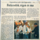 A Balázs-járás hosszú évtizedes múltra tekint vissza a településen, apáról fiúra szállt e nemes hagyomány. Sági Tünde, Rigó Endréné és még sokan mások létrehozták a Balázsolók több generációs találkozóját.