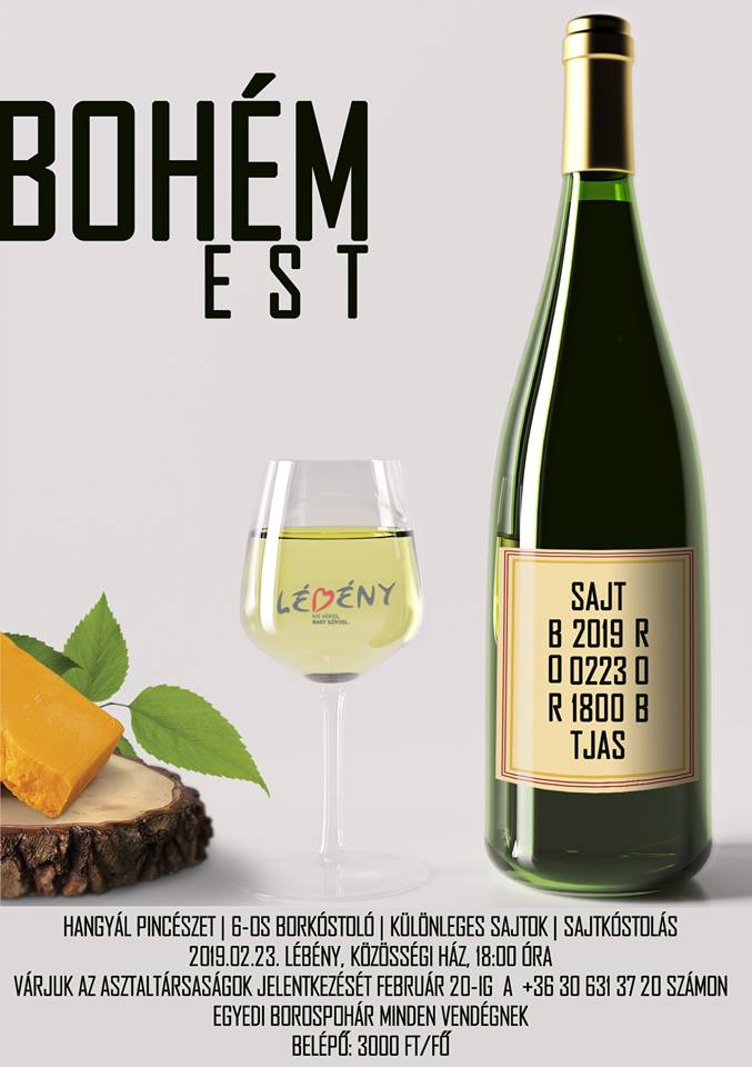 Bohém Est címmel kerül megrendezésre 2019. február 23-án Lébényben az az izgalmasnak ígérkező program, melyen a Hangyál Pincészet borkínálata sorakozik majd fel, különleges sajtok társaságában.
