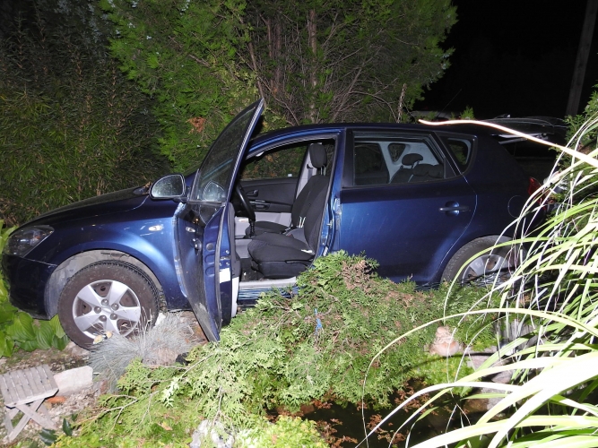 Átszakítva a kerítést kerti tóba hajtott egy személyautó Dunakilitin