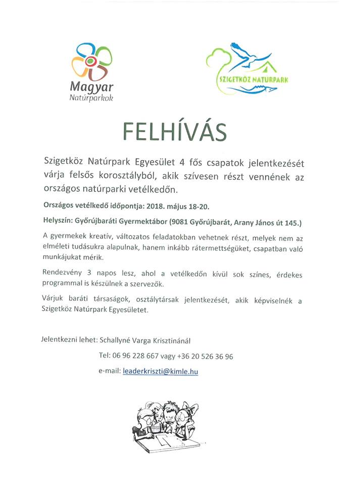 Szigetköz Natúrpark Egyesület 4 fős csapatok jelentkezését várja felsős korosztályból, akik szívesen részt vennének az országos natúrparki vetélkedőn.