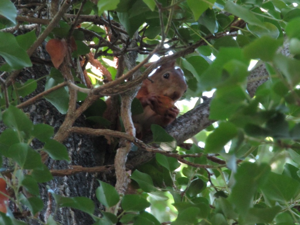 Igen ám, csak egy újabb hang csiklandozta meg a dobhártyát. Hoppá! Ezt nem tollas okozza. De ki? Új erőre kap a kíváncsiság, mohón fürkészi a fák ágait, de semmit sem lát. Na, jó… Mehetünk… A fül azonban újra felordít. Állj már meg!! Fejet föl! Tuti, hogy ott van!!! Szegény fej tekereg, szinte bebújik a lombok közé. Egyszer csak kukuccs! Két fekete apró gombba ütközik, kinek gazdája tuti kajánul kuncog magába. Mi van! Csak most vettél észre? De nem smucig, önző. Engedi, hogy nézzem a szőrmés mókust, miközben épp a reggelijét fogyassza. Ott rágicsál, közben lepislant, mi az érdekes abban, hogy eszek?
