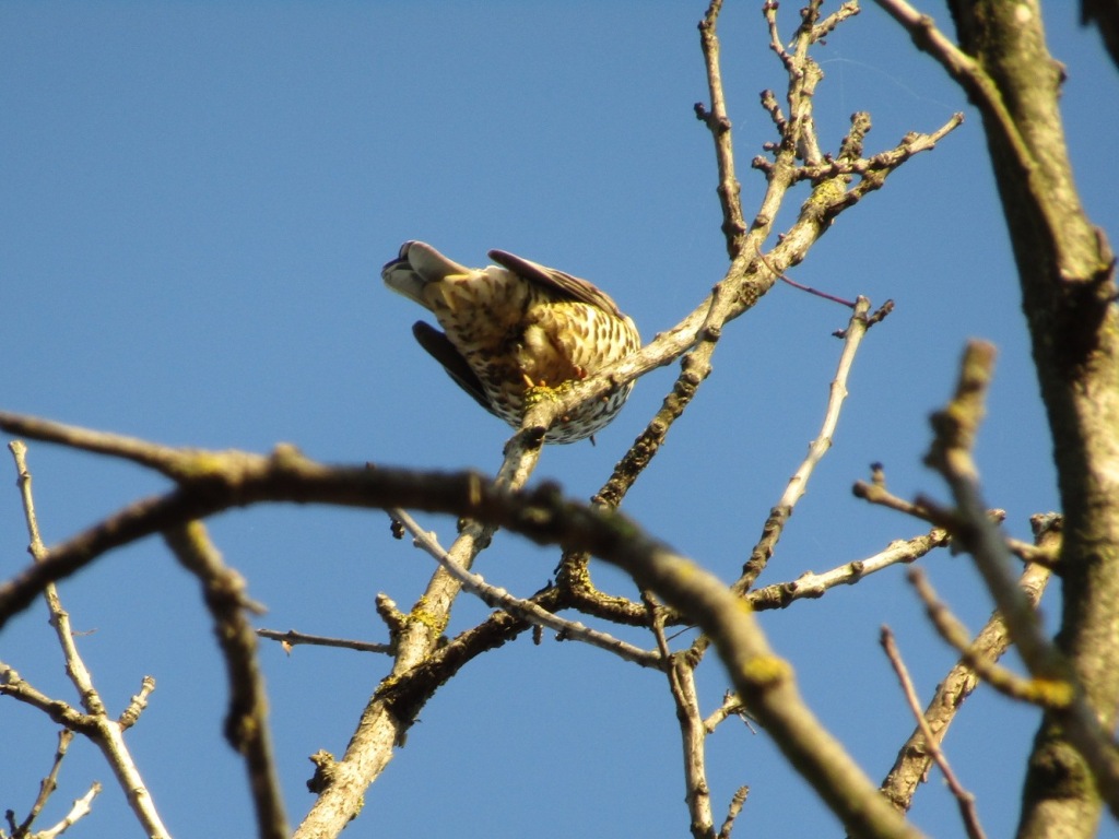 Az út, mely a fák közé hívott még kellően csábító volt ahhoz, hogy kövessen, így hát elindult a lehullott falevelek zörgetésének élvezete. Ilyen úton csendben haladni lehetetlen. Amerre megy a test, azt tuti mindenki tudja, igaz első szakaszokon ebből semmi gond nem volt, hiszen holdbéli üresség ült a tájra. Idővel azonban, mintha kinyíltak volna az eddig bezárt ablakok, imitt-amott az ablakszárnyak kettényíltak és kezdődött a műsor. Elsőként a kerékpár láncának leesésének hangját utánzója került a távcső kereszttüzébe. Kárpát-medence legdélcegebb énekese a léprigó szállt a fák csúcsára és onnan mustrálta a betolakodót. Miféle szerzet lehet? Lesegetett, majd idővel, huss, elillant kedvenc helyére a parazita fagyöngy zöld gömbjébe.
