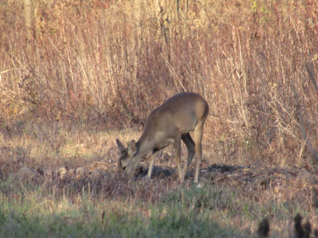 Kevés gyufásdoboznál nagyobb kétszemű lény van, ki erre nem kapja fel a fejét. Közéjük tartozott az őzike, ki az útra visszatérve kikandikált a sűrűből, majd mivel hangtalanul igyekeztem ott lenni, nekiállt vacsizni. Valami finomat találhatott, mint a csikós kezei közé került gémeskút, úgy bólogatott szüntelen. Néha felnézett, majd falatozott tovább kedvére.