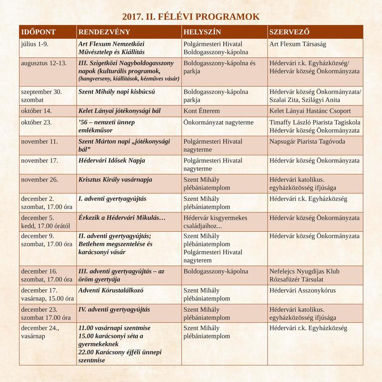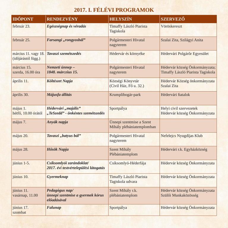 I. és II. félévi programok Héderváron. Vár Hédervár!