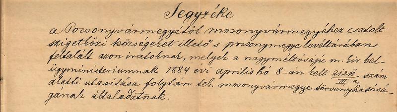 A hetven tételnyi iratot a levéltáros által Pozsonyban vásárolt két ládában hozták Magyaróvárra a megyeházára, ahol szétosztották a megfelelő hivatalnokok részére, az ügymenet zökkenőmentes folytatása érdekében.