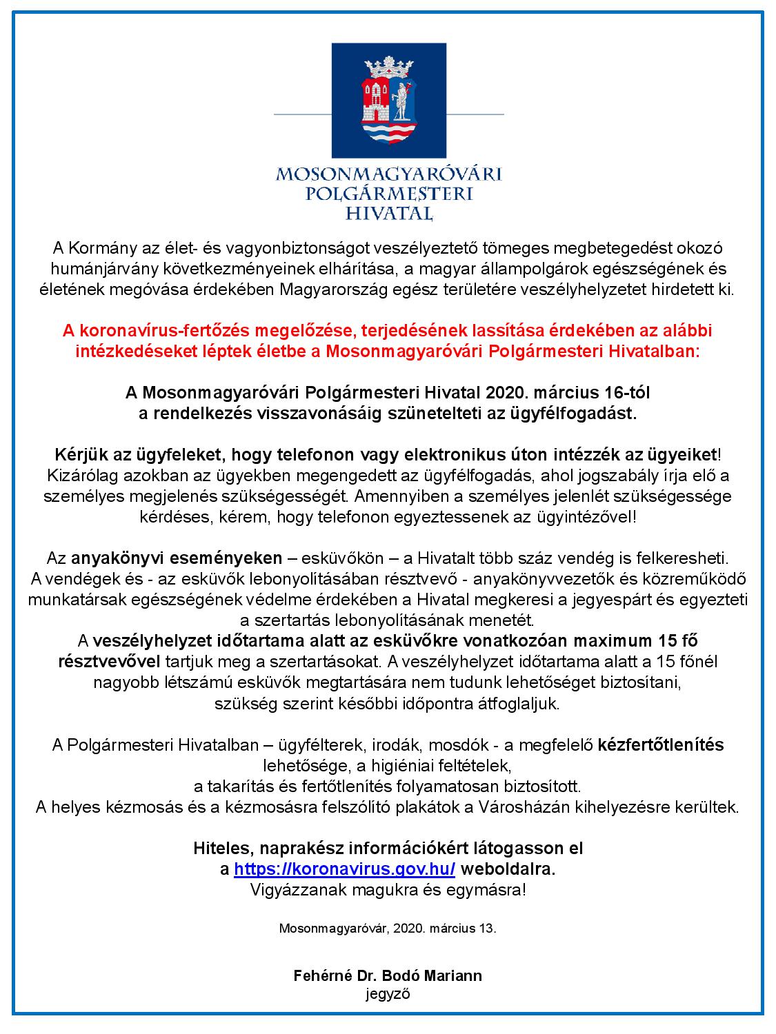 Jegyzői és polgármesteri intézkedések a koronavírus miatt