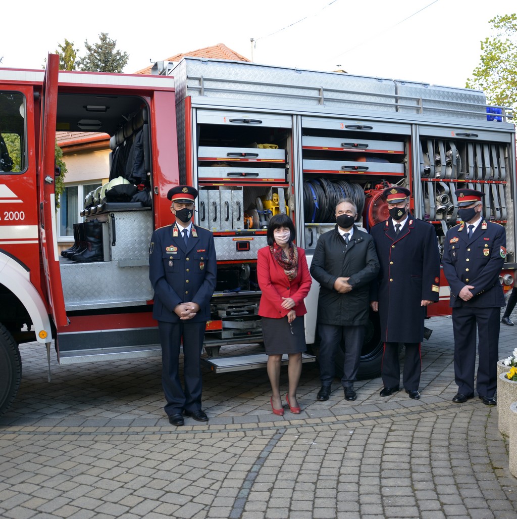 A beszédeket követően a Dunakiliti Önkéntes Tűzoltó Egyesület átvehette a 10 millió forint értékű, új tűzoltóautó kulcsát.