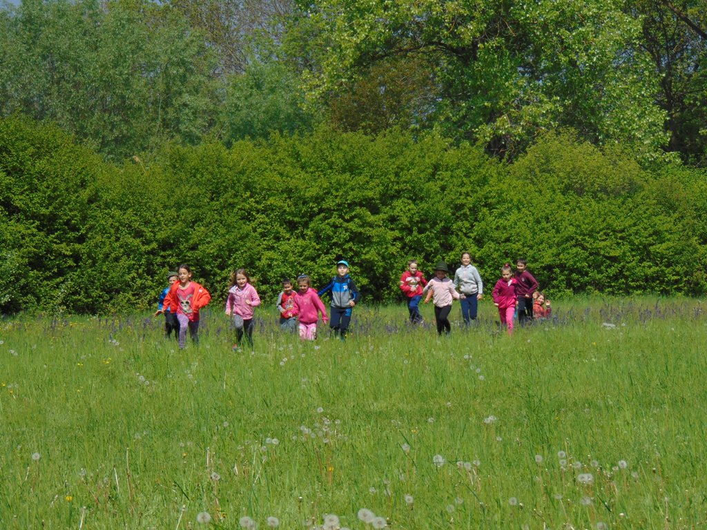 Amikor mindenki feltöltötte magát energiával, újra elindultunk, de csak a kedvenc mezőkig, hiszen a csapaton már a kisebb előadásokon is látszott, nem csak érdekli őket a természet, hanem kellő vállalkozó szellem és dinamizmus is megvan bennük jó kis játékok játszására. Akkor lássuk! Kezdtük a sólymos fogócskával, mely osztatlan sikert aratott közöttük. Mi több, egy alkalom nem is volt elég nekik, újra és újra szerették volna, de volt még csókás kergetőségünk is. Persze azért a tüdő és a szív ott is emberi anyagból volt, s holott a lelkesedésük mindezt feledtette velük, pihi gyanánt a madarak méretéről is jött egy nyugodtabb mókázás. Utána újra sólymozás… Micsoda lendület, lelkesedés…