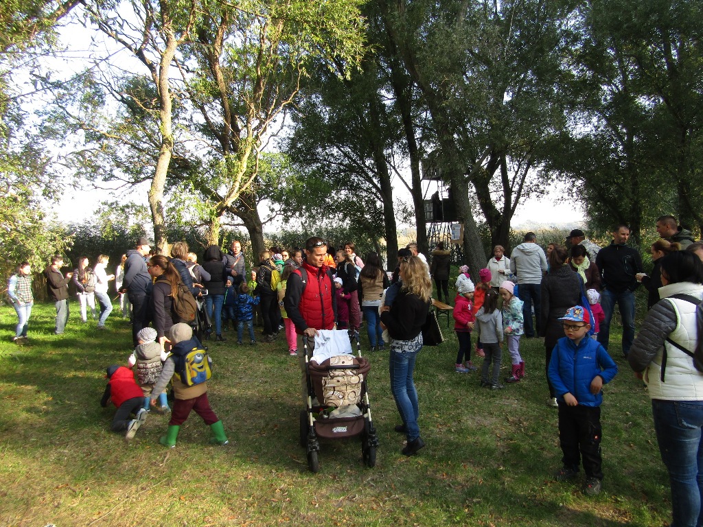 Idővel egyre több család érkezett. Gombamód lepték el a környéket, hol a nádas közében, hol a kihelyezett plakátok körül, hol pedig az asztaloknál alakultak ki a csoportok. Alig pislogtunk párat és máris 9 óra kopogtatott. Ekkor összeállt lelkes csapatunk és Polgármester Úr megnyitotta a 2018-as Európai Madármegfigyelő Nap lipóti állomását.
