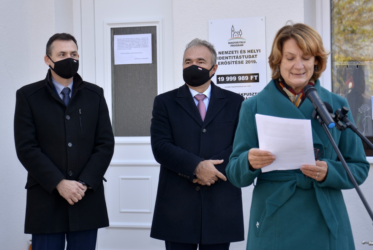 Eller Gizella, Kimle-Novákpuszta polgármestere rövid áttekintést adott a település és a Kultúrház történelméről, az évek során bekövetkezett változásairól, majd külön kiemelte a jelenlegi beruházásban részt vevő személyeket és vállalkozókat, vállalkozásokat, hiszen közülük többen is önkéntentes munkában vállalták a munkálatok elvégzését.