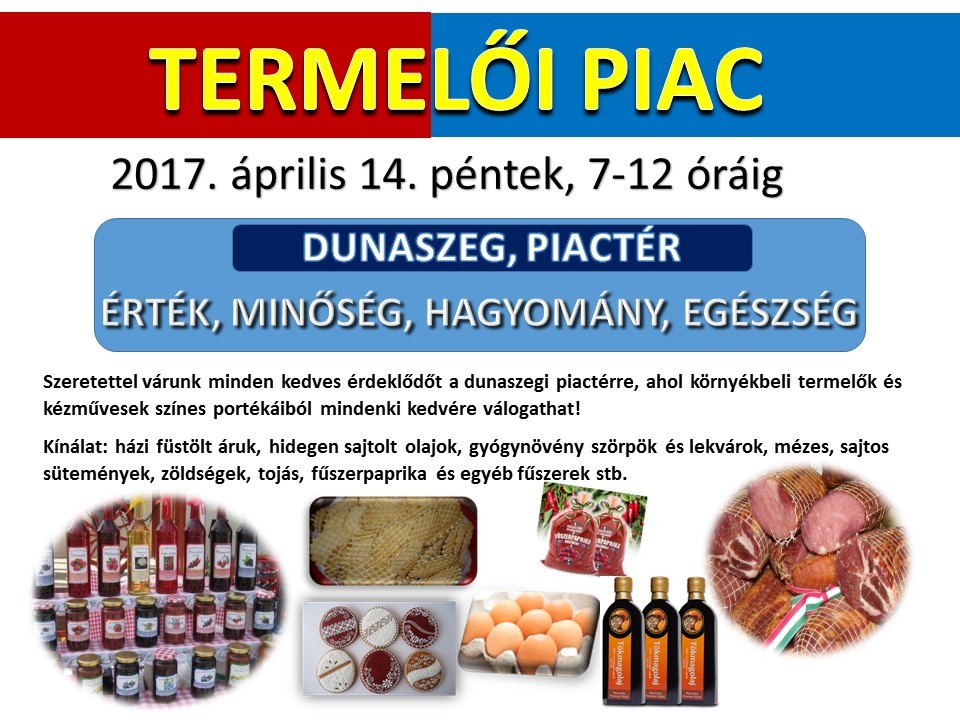 2017. április 14-én nagypénteken helyi és környékbeli termelők és kézművesek mutatják be portékáikat.
