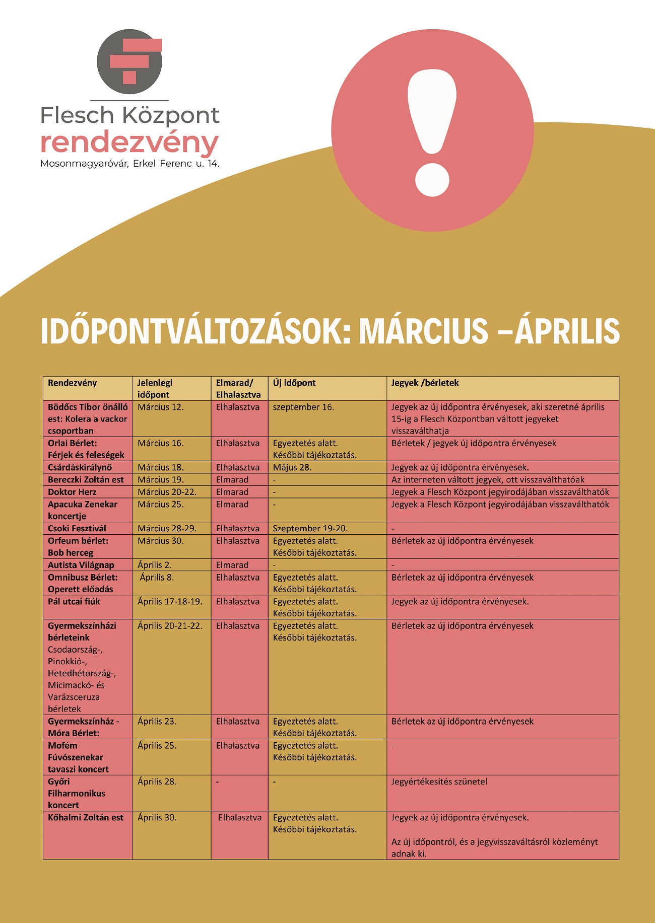 Az elhalasztott rendezvényeket később pótolni fogják.