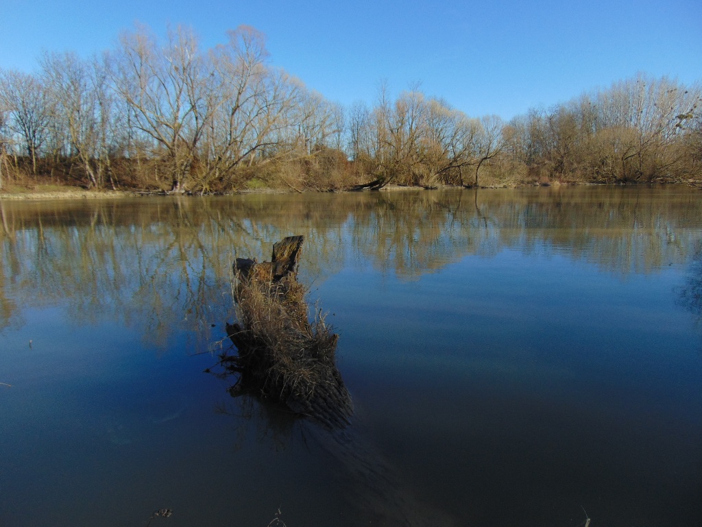 Mi történik itt? Egy vízpart csupán. Csak épp a partját, ahogy a nagy könyvbe meg van írva, öreg fák karjai és ujjai fonják át. Kacskaringózik erre, arra, amarra, amit a természet élő egysége tart ölében. Húúúú! Mindezt tetőzve lábad előtt egy facsonk emelkedik ki a vízből, csak hogy a kép tökéletes legyen. Na, kérem, itt kell megállni.