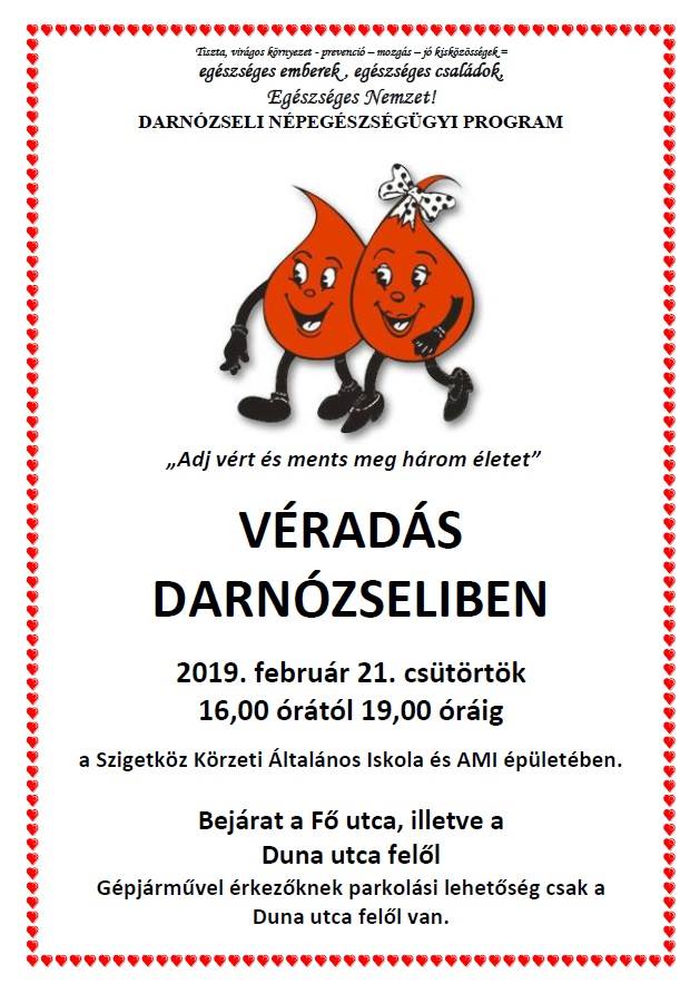 Darnózselin 2019 február 21-én adhatnak vért az önkéntesek.