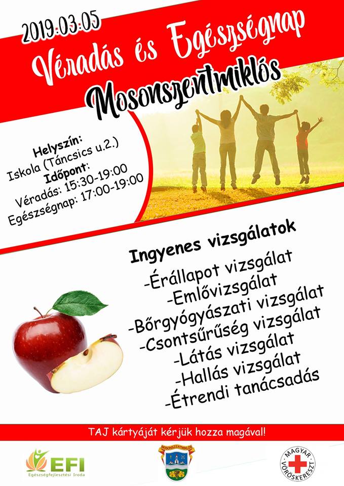 Véradás és ingyenes egészségszűrés lesz Mosonszentmiklóson március 5-én!