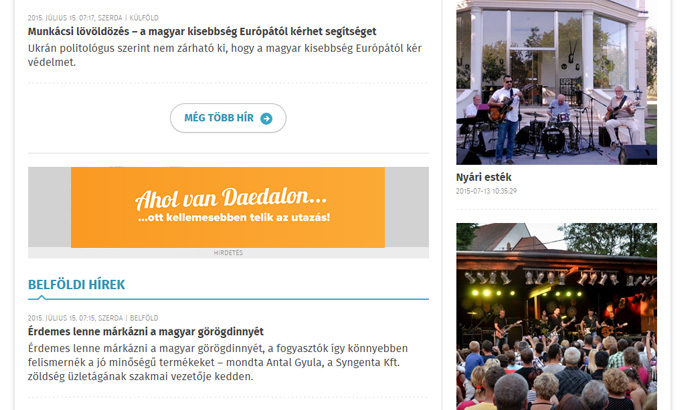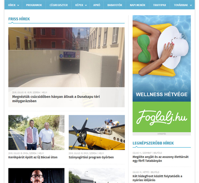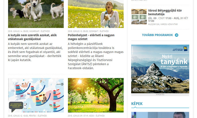 A közép banner minden egyes aloldalon megjelenik az egyes tartalmai részek, hírek, programajánló, képgalériák között. - aktív link saját oldalra